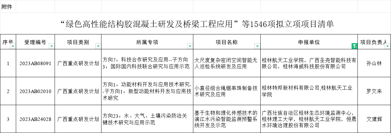 近日,自治区科技厅发布了依托《“十四五”广西科技计划项目申报指南(第三版)》(桂科计字〔2023〕33号)集中申报的2024年拟立项项目公示名单,PA视讯集团网站作为承担单位负责的《大尺度复杂密闭空间智能无人巡检系统研发及应用》等3个项目获批立项,立项经费达520万。
