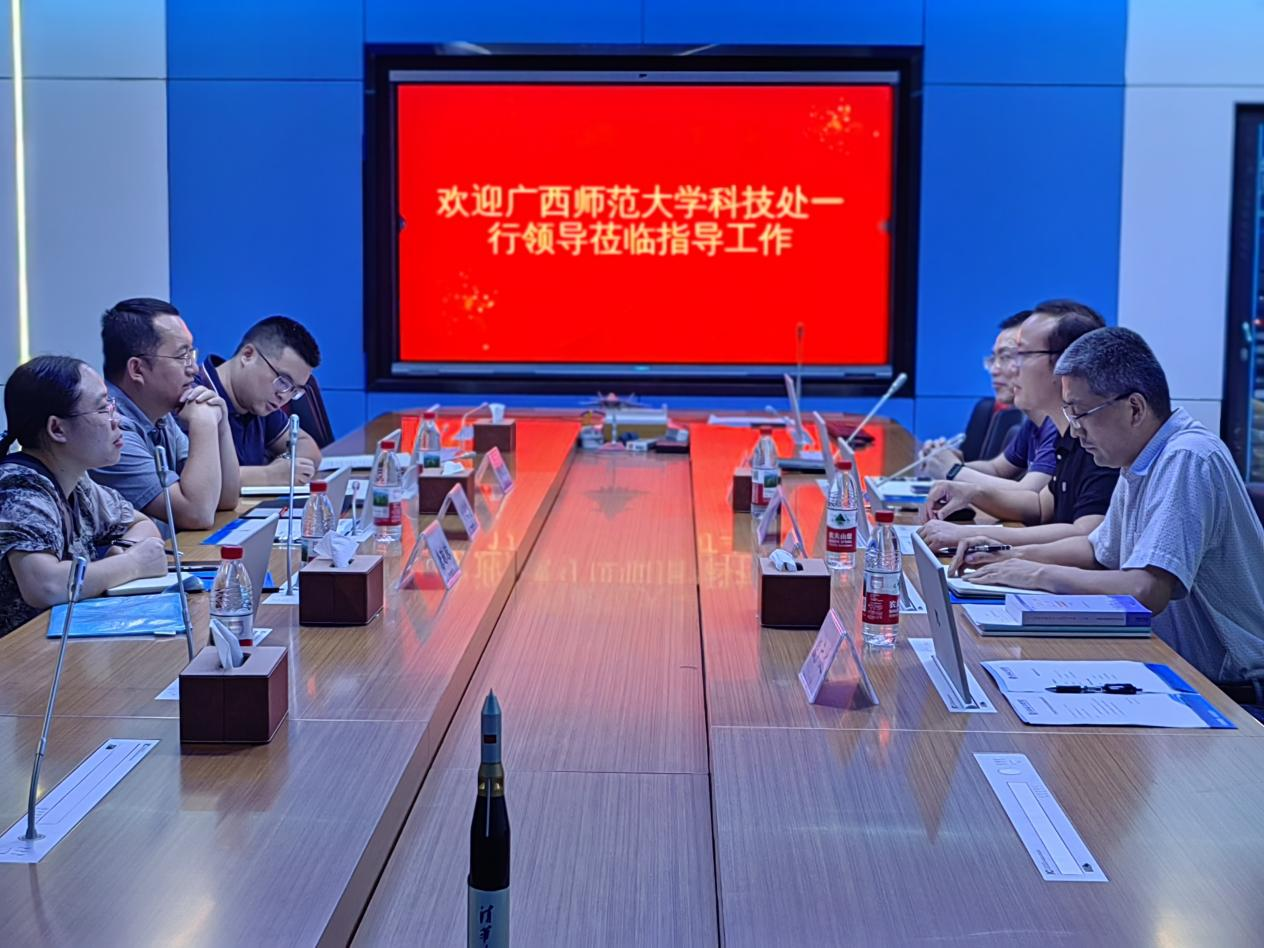 6月10日,广西师范大学科技处刘俊秀副处长(主持工作)一行来校开展调研交流,PA视讯集团网站科技处负责人、外语外贸学院负责人在擎天楼C310会议室热情接待了来访客人。